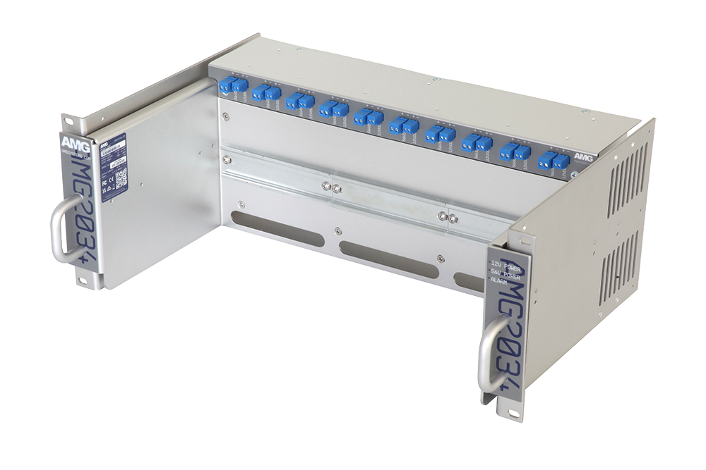 10 pozisyona kadar AMG veya 3. parti ürün desteği sunan, 19” standart 4U raf montajlı, 12VDC ve 56VDC harici güç girişli, LED göstergeli ve arıza röleli, entegre kablo yönetimi ile temiz kurulum sağlayan, Birleşik Krallık üretimi dayanıklı güç kaynağı çözümü.