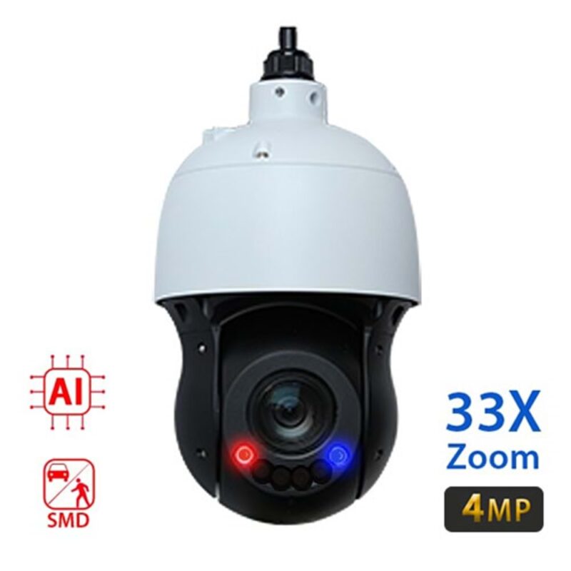 4MP Starlight PTZ Kamera, 33x optik zoom, yüz algılama ve 120m IR mesafesiyle geniş alanlarda net görüntü sağlar; IP66 koruma ve 6000V yıldırım koruması ile dayanıklılığı garanti eder.